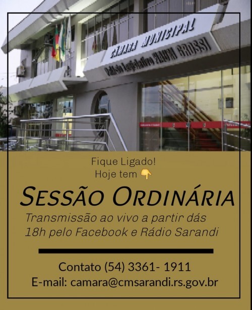 Acompanhe os trabalhos através do Facebook e Rádio Sarandi AM, a partir dás 18h.