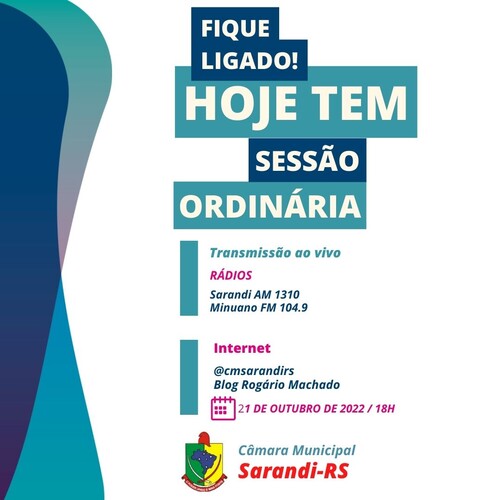 Transmissão ao vivo, por meio das Rádios Sarandi AM 1310 e Minuanmo FM 104.9. Se preferir assista a sessão em nossa página no Facebook( @cmsarandirs) e Blog Ragério Machado.