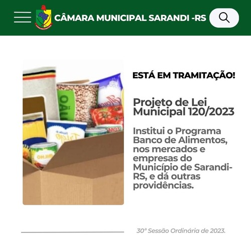 A Câmara de Vereadores de Sarandi começou a discutir projeto de lei que institui o Programa Banco de Alimentos, nos mercados e empresas do Município de Sarandi-RS.