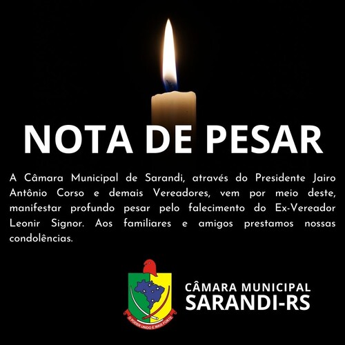 A Câmara Municipal de Sarandi manifesta os seus votos de pesar aos amigos e familiares do Vereador Leonir Signor.