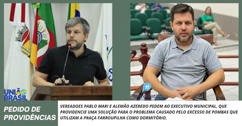 Vereadores Pablo Mari da Bancada do União Brasil, Alemão Azeredo da Bancada dos Progressistas, solicitam ao Executivo Municipal, a fim de que PROVIDENCIE uma solução para o problema causado pelo excesso de Pombas que utilizam a Praça Farroupilha como dormitório.