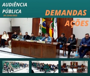 Conheça as demandas e ações, elencadas na Audiência Pública realizada no dia 23 de maio na Câmara Municipal de Vereadores de Sarandi. Entre as demandas levantadas pelos cidadãos e autoridades, com suas respectivas ações a serem desenvolvidas, está a possibilidade de criação de um projeto de lei de instituição de uma Guarda Municipal, disponibilidade de mais veículos para as forças policiais, além da realização de palestras e debates para conscientização dos cidadãos. Aumento de investimentos em educação, possibilidade da criação de um espaço público para os jovens se divertirem, treinamento dos órgãos de fiscalização e aconselhamento. Disponibilização de recursos financeiros da Câmara de Vereadores para treinamentos indicados pelo Conselho Tutelar. Ações essas que visam amenizar o problema da insegurança pública. É sempre muito importante debater assuntos de interesse coletivo, principalmente quando o assunto é a segurança da população e a preservação dos direitos humanos, pois por meio das Audiências Públicas, podemos conversar com a população, lideranças e autoridades, levantando os problemas, as possíveis soluções sobre a temática que, no caso específico desta, foi a segurança pública. É muito importante essa luta pela segurança e o bem estar de toda a população Sarandiense. Por meio desta devolutiva, as quais foram elencadas pela direção dos trabalhos da audiência, apresentamos a comunidade as demandas e respectivas ações a serem desenvolvidas em nosso Município, com apoio dos sarandienses, lideranças e autoridades.
