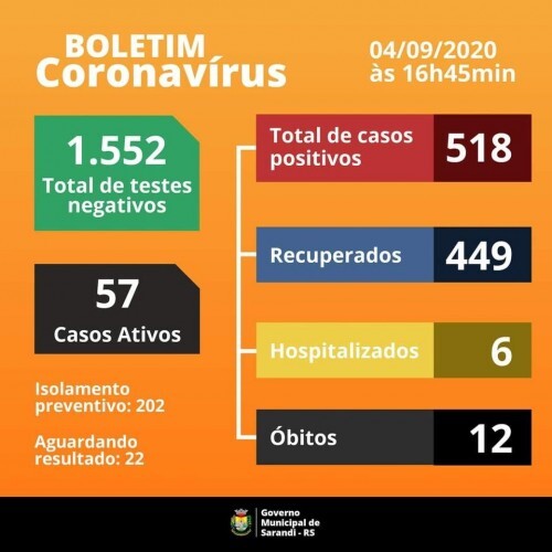 Boletim epidemiológico desta sexta-feira, 04 de setembro.