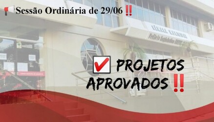 Durante a 14ª sessão ordinária, que aconteceu na última segunda-feira(29), foram deliberados e aprovados de forma unânime , 02 projetos de lei do Legislativo, um projeto de lei do Executivo, um projeto de Lei Complementar com Emenda aditiva.