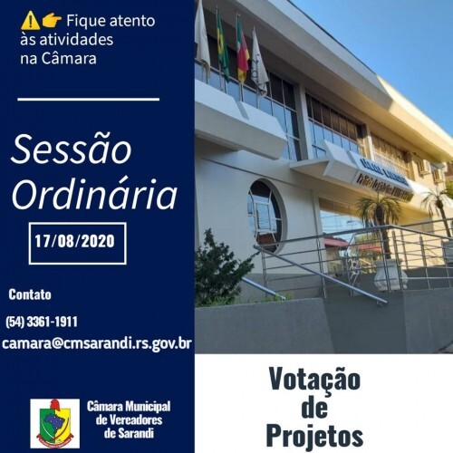 Câmara Municipal de Vereadores de Sarandi aprovou SETE projetos de lei na 19ª Sessão Ordinária de 2020 que aconteceu na tarde desta segunda-feira(17).