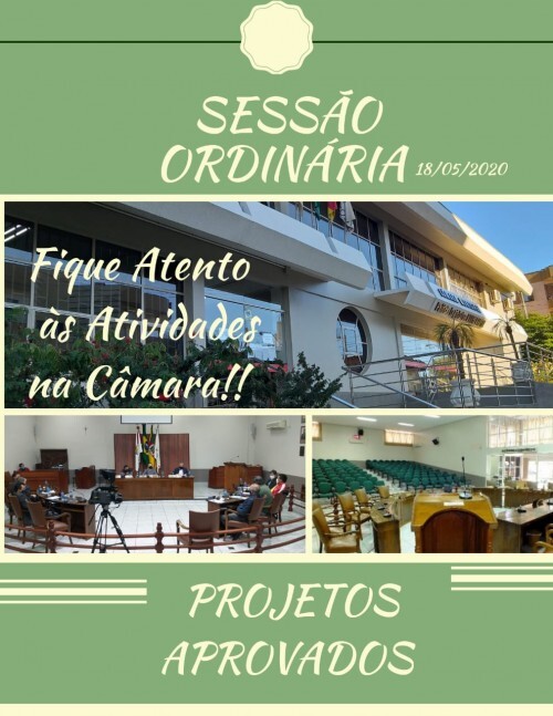 A Câmara de Vereadores realizou na última segunda-feira(18), a 8ª Sessão Ordinária de 2020, aprovando 03 projetos de suplementação, 01 Projeto de Lei Municipal denominando Cemitério Municipal João Soares e também o Projeto de Lei do Legislativo que denomina a Rua B, no Bairro Mirasul, n/c, às margens da BR 386, que passa a se chamar Rua Avelino Marcolan.