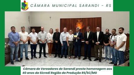 Os trabalhos foram coordenados pelo Presidente da Casa Legislativa, Vereador Jairo Antônio Corso, e após a leitura do requerimento que deu origem ao ato solene feita pelo Mestre de cerimônias Lori Vargas Oliveira, foi entregue pelo proponente da homenagem uma placa como forma de gratidão a Sicredi, representada na ocasião pelo seu presidente Sr. Saul Rovadoski acompanhado dos vereadores das bancadas, Progressista, Pedetista e União Brasil. Estiveram presentes o presidente do Sicredi Região da Produção, Sr. Saul João Rovadoscki, vice-presidente, Sr. Leonardo Portolan, demais diretores, coordenadores e colaboradores em geral. PARABÉNS, vida longa e muito sucesso a Sicredi pelos seus 40 anos de história!