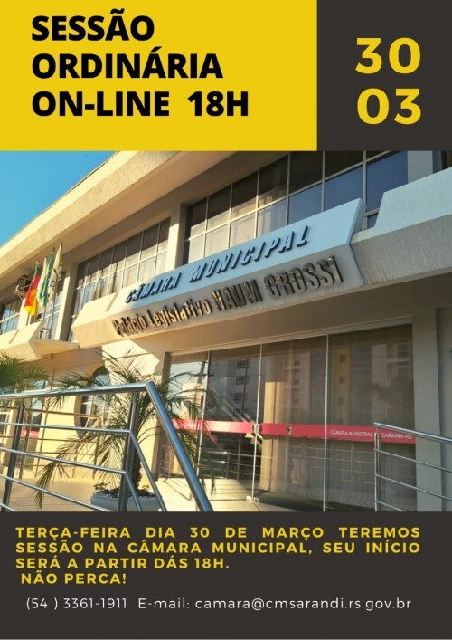 Acompanhe a transmissão ao vivo pela internet aqui na página oficial da Câmara Municipal no Facebook, e através das ondas sonoras da Rádio Sarandi AM 1310.