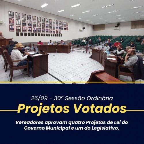 Na última segunda-feira (26), Vereadores se reuniram na Sede do Legislativo Municipal para a realização da 30ª Sessão Ordinária deste ano. A liderança dos trabalhos esteve a cargo do presidente Alemão Azeredo (PP). Na ocasião foram apreciados cinco projetos de lei, sendo quatro deles de origem do executivo e um do legislativo.