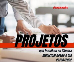 Os projetos acima descritos, já estão seguindo o rito de tramitação na Câmara Municipal, assim que estiverem aptos, poderão constar na pauta da ordem do dia das próximas sessões.