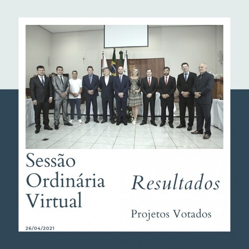 Na noite da última segunda-feira(26), a Câmara Municipal realizou por videoconferência a décima Sessão Ordinária do ano em curso. Os trabalhos foram conduzidos pelo Vereador Wilmar José de Azeredo - Presidente da Casa de Leis, que apresentou ao plenário os projetos aptos a votação. Após receberem pareceres favoráveis dos integrantes das Comissões, os projetos de lei municipal nº 033, 040 e 041, entraram para a pauta da ordem do dia, sendo amplamente discutidos e votados. Os Parlamentares entendendo que os projetos de lei de origem do executivo trarão vários benefícios a população, optaram em aprová-los através do voto da maioria dos Vereadores.