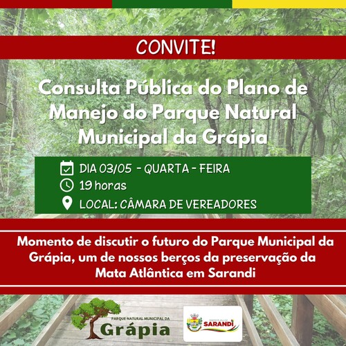 CONVITE - Consulta Pública referente ao Plano de Manejo do Parque da Grápia.