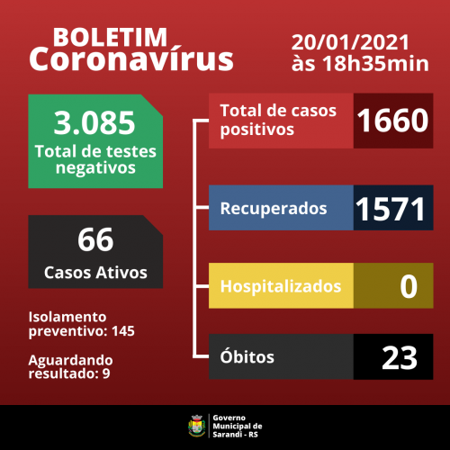 Boletim epidemiológico desta quarta-feira, 20 de janeiro de 2021.