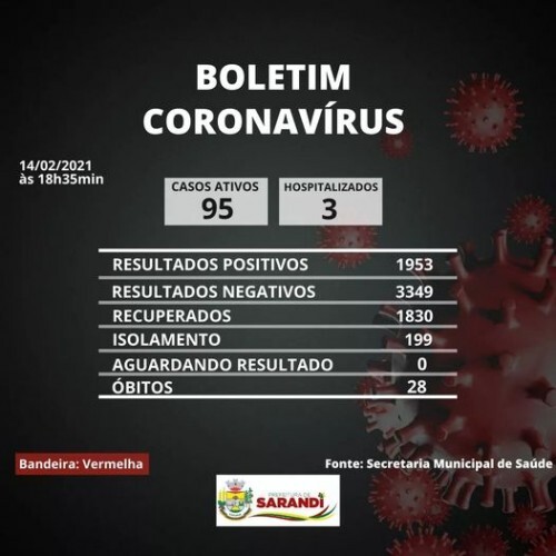 Boletim epidemiológico deste domingo, 14 de fevereiro de 2021.