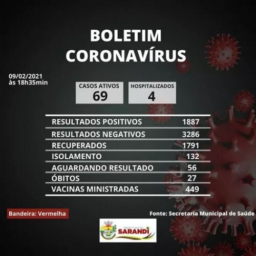Boletim epidemiológico desta terça-feira, 9 de fevereiro de 2021.