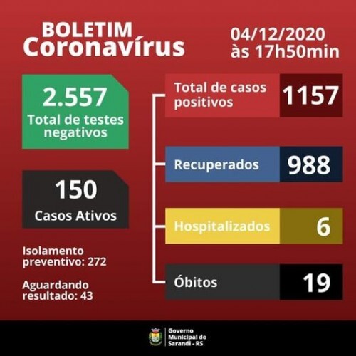 Boletim epidemiológico desta sexta-feira, 04 de dezembro de 2020.