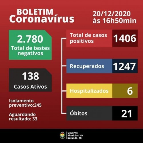 Boletim epidemiológico deste domingo, 20 de dezembro.