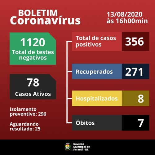O município de Sarandi registou o sétimo óbito por Covid-19 ontem, dia 12/08.