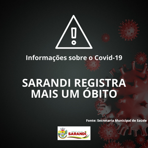 O município de Sarandi confirma no dia de hoje, o trigésimo óbito por covid-19, ocorrido no dia 15/02. Trata-se de uma mulher, 90 anos, com comorbidades. A Secretaria Municipal da Saúde, juntamente com a Prefeitura de Sarandi lamentam o ocorrido e se solidarizam com os familiares. Reforçamos que a população continue cumprindo os protocolos de segurança contra o covid-19 e mantendo o distanciamento social.