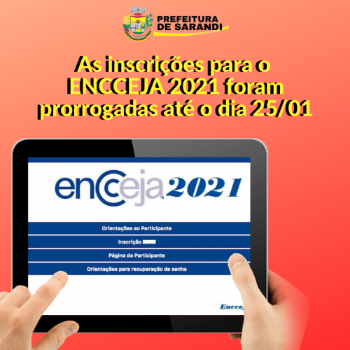 As inscrições do Exame Nacional para Certificação de Competências de Jovens e Adultos (Encceja) 2020 foram prorrogadas. Os interessados podem realizar a inscrição pelo sistema do Encceja até as 23h59 do dia 25 de janeiro (Link abaixo)