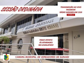 Acompanhe ao vivo na página oficial da Câmara Municipal de Vereadores de Sarandi no Facebook também pela Rádio Sarandi AM 1310 !