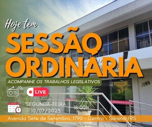 Acompanhe os trabalhos realizados pelo Poder Legislativo. Participe de forma presencial ou pelo Facebook. Também ouça a transmissão da sessão por meio da Rádio Sarandi FM 103.3. Sua assistência ajuda e fortalece os debates e soluções para os problemas vividos por nossa população.