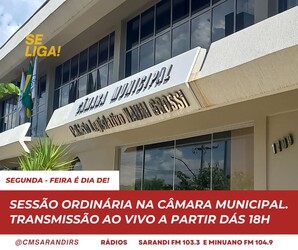 Convidamos toda comunidade sarandiense a participarem pelo Facebook (@cmsarandi), ou presencialmente da 10ª sessão ordinária. Sua assistência engrandece e contribui, além de fortalecer os debates e buscar soluções para os problemas vividos por nossa população.