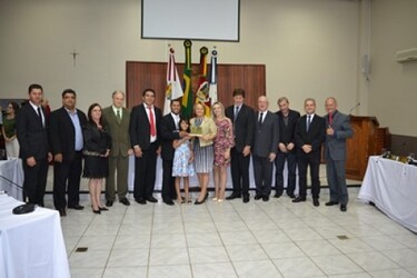 O Mestre de Cerimônias Assessor de imprensa Lori Luiz Vargas de Oliveira dá abertura a Sessão Solene e convida o Presidente do Legislativo Airton Ortiz e os demais Vereadores para adentrarem no plenário e ocupar seus respectivos lugares. Na sequência passou-se a compor a mesa diretiva dos trabalhos, Presidente do Legislativo Airton Ortiz, 1º Secretário Rudimar Signor, Diretora da Escola Estadual de ensino fundamental Dr. João Carlos Machado Adiles Carpenedo Demarchi representando a homenageada da noite. O Mestre de Cerimônias Assessor de imprensa Lori Luiz Vargas de Oliveira registra a presença do Padre Miguel Longui, Ex Vereadora Malu Oltramari, Professores, ex Professores, alunos, ex alunos, ex Diretores da Escola Dr. João Carlos Machado. O Presidente do Legislativo Airton Ortiz convida o Vereador Wilmar José de Azeredo para fazer a leitura de um texto da Bíblia Sagrada. Em seguida convida a todos para acompanharem a execução do Hino Nacional Brasileiro. O Presidente do Legislativo Airton Ortiz declara aberta a Sessão Solene. O Mestre de Cerimônias Assessor de imprensa Lori Luiz Vargas de Oliveira faz a leitura do Projeto de Lei que determina a homenagem. O Presidente do Legislativo Airton Ortiz convida o Prefeito Municipal Leonir Cardozo para que se faça presente na mesa diretiva.O Mestre de Cerimônias Assessor de imprensa Lori Luiz Vargas de Oliveira convida o Presidente do Legislativo Airton Ortiz e o Prefeito Municipal Leonir Cardozo para fazerem a entrega da placa de homenagem a Escola estadual de ensino fundamental Dr. João Carlos Machado.
