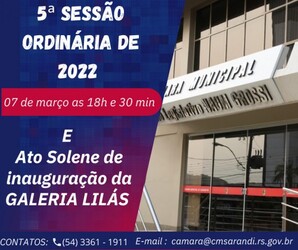 Câmara de vereadores de Sarandi, promoverá na tarde da próxima segunda-feira (07), a inauguração da Galeria Lilás, um espaço de memória para as quatorze mulheres que atuaram como vereadoras no município. O objetivo é resgatar a história e homenagear todas as melhores que exerceram importante papel parlamentar na Câmara Municipal ao longo dos oitenta e dois anos de Sarandi. Mais que a simples homenagem, a intenção é motivar e valorizar a presença feminina nas atuações legislativas. Um espaço de destaque, para que a população possa ver, rever e também conhecer um pouco mais da história destas guerreiras, que por aqui passaram, independente de sigla partidária e do período de tempo que aqui permaneceram. Também para que a população saiba quem foram as mulheres que deixaram sua marca, que defenderam constantemente e de forma incansável os interesses coletivos. As Ex-Vereadoras e a vereadora em exercício que fazem parte da Galeria Lilás são: