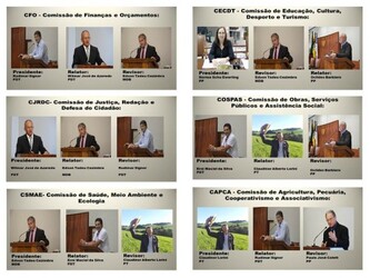 No Art. 47. As comissões permanentes tem por objetivo estudar os assuntos submetidos ao seu exame, manifestar sobre eles a sua opinião e preparar, por iniciativa própria ou indicação do plenário, projetos de lei atinentes à sua especialidade. Parágrafo único. As comissões permanentes são em número de seis, compostas cada uma de três vereadores, com as seguintes denominações: I – justiça e redação e defesa do cidadão; II – finanças e orçamentos; III – obras, serviços públicos e assistência social; IV – agricultura, pecuária, cooperativismo e associativismo; 15 V – educação, cultura, desporto e turismo; VI – saúde, meio ambiente e ecologia.