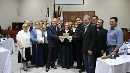 Esta justa homenagem aconteceu devido o requerimento n.º 043/2018 de autoria dos Vereadores da Bancada do PDT, Srs.Wilmar Azeredo, Rudimar Signor, Erni Maciel da Silva, Denise Gelain, recebendo total apoio dos colegas Alex Rodrigues e Airton Ortiz. O apoio dos demais vereadores foi unânime. A emocionante homenagem aconteceu na 23ª Sessão de 2019 .Foi entregue uma Placa de homenagem, pelo Presidente do Legislativo Sr. Alex Rodrigues e pelos Vereadores Proponentes da merecidíssima homenagem, a Sra.Mirtes Canova Cortese na companhia dos demais integrantes da Etnia Italiana e do Coral Gira L’Amore.