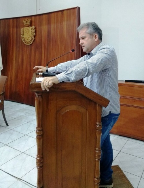 Líder da Bancada do Movimento Democrático Brasileiro (MDB), ver. Edson Tadeu Cezimbra fala em apoio aos Professores e aos Servidores Públicos Estaduais.