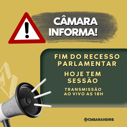 O RECESSO PARLAMENTAR JÁ ENCERROU E HOJE É DIA DE SESSÃO ORDINÁRIA NA CÂMARA MUNICIPAL !