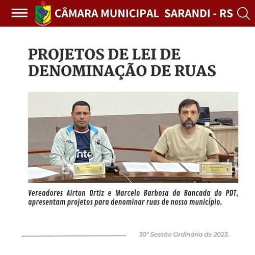 A Câmara de Vereadores de Sarandi, começou a discutir três novos Projetos de Lei do Legislativo de denominação de ruas.