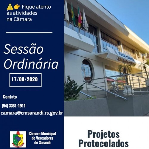 Nesta segunda-feira(17), a Câmara Municipal de Sarandi, realizou a 19ª Sessão Ordinária de 2020. Todas as medidas recomendadas pelos órgãos de saúde foram adotadas e a transmissão foi realizada pelo Facebook .