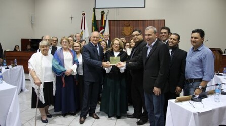 Se hoje temos indústria, comércio e agricultura forte, nós devemos muito aos descendentes italianos, que vieram trabalharam, desbravaram esta terra, enfrentando animais bravos e peçonhentos, muitas dificuldades, mas junto com eles trouxeram alegria, muitas habilidades para trabalhar como carpinteiros, pedreiros, enfermeiros, veio junto o Padre Eugênio Medicheski trazendo a palavra de Deus, a fé o ânimo, esperança e certeza que com muito trabalho e esforço iriam conseguir chegar no seu objetivo, e aqui estão os descendentes destas famílias que desbravaram nosso município, e certamente temos a certeza que futuramente muitos descendentes de vocês, vão poder se orgulhar do seus avós, de seus pais, tios, assim como hoje vocês se orgulham de seus ancestrais que já não estão mais entre nós, mas vocês estão aqui trazendo alegria, cultura e renovando a cada dia as lembranças de seus antepassados que deixaram na Itália, trouxeram cultura, ética, gastronomia, e trouxeram a alegria do cântico para nós, agradece a todos os ouvintes, fala de sua alegria em poder indicar que esta sessão desta noite se realizasse aos presentes a oportunidade de poder fazer parte desta homenagem, conclui dizendo “a alegria é nossa e a festa é de vocês”.