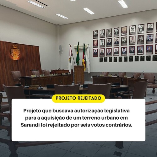 Em uma votação acirrada, o projeto que buscava autorização legislativa para a aquisição de um terreno urbano em Sarandi foi rejeitado por seis votos contrários. A proposta tinha como objetivo viabilizar melhorias no acesso ao Loteamento Público Residencial Robert Merten, parte integrante de um amplo projeto habitacional coordenado pela Secretaria Municipal de Habitação e Regularização Fundiária.