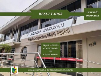 A 30ª sessão ordinária será realizada no dia 30 de novembro de 2020, com início ás 18 horas, no Plenário Luiz Agne, com transmissão ao vivo na página oficial da Câmara Municipal de Vereadores de Sarandi no Facebook e Rádio Sarandi AM 1310.