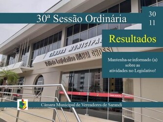 A Câmara Municipal de Sarandi realizou a 30ª sessão ordinária de 2020, na noite da última segunda-feira (30), em encontro iniciado às 18 horas, na sede do Poder Legislativo Municipal. Na ocasião, os vereadores deliberaram pela aprovação unânime de três Projetos de Lei do Executivo e dois Projetos de Lei do Legislativo. Confira