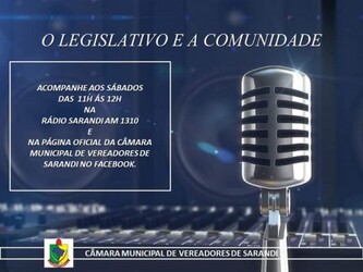 Transmissão ao vivo na página oficial da Câmara Municipal de Sarandi no Facebook e também pela Rádio Sarandi AM 1310.