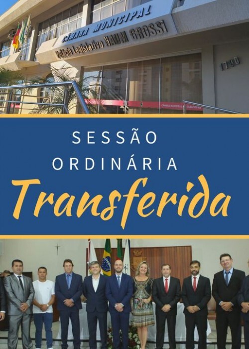 O Vereador WILMAR JOSÉ DE AZEREDO, Presidente da Câmara Municipal de Sarandi, conforme dispõe do artigo n° 37, de conformidade com o Artigo 114, Parágrafos 1º, 2º, 3º, 4º e 5º da Resolução nº 004, de 30 de dezembro de 2002, “Regimento Interno”, atendendo o disposto na Lei Orgânica do Município, especialmente o artigo 87, I do Regimento Interno, TRANSFERE A SESSÃO ORDINÁRIA DO DIA 29/03/2021 POR PROBLEMAS TÉCNICOS DE TRANSMISSÃO E CONVOCA OS(AS) SENHORES(AS) VEREADORES(AS) para uma SESSÃO ORDINARIA VIRTUAL (através do Google Meet), conforme art. 3º da Resolução de Mesa n. 003/2021 a realizar-se no dia 30 de março de 2021 (terça-feira), às 18horas.