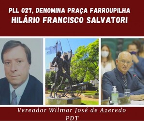 O PLL Nº027, de autoria do vereador Wilmar José de Azeredo, solicita autorização legislativa para denominar a Praça Farroupilha com o nome de Hilário Francisco Salvatori, um cidadão que muito contribuiu com o crescimento e desenvolvimento de Sarandi.