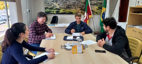 Na tarde desta quarta-feira, dia 08, o vereador Jairo Antônio Corso (PDT), acompanhado da assessora jurídica Vanessa Ortolan, recepcionou no gabinete da Presidência da Câmara Municipal o Presidente do Sindicato dos Trabalhadores Rurais na Agricultura Familiar (Sintraf) Evandro Magnabosco e o Chefe do Escritório da Emater/RS-Ascar, Graciel Magionanni.