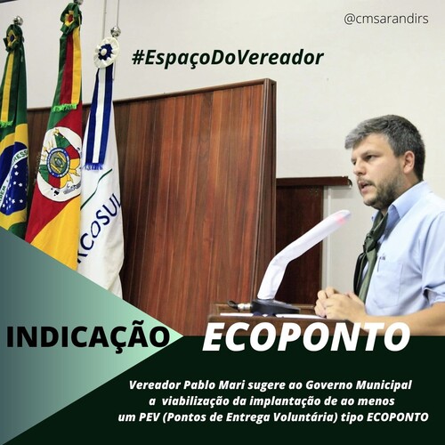 Sugerida por Pablo Mari, o ecoponto busca reduzir o descarte irregular de resíduos volumosos em nossa cidade. Na sessão ordinária realizada na última segunda-feira (11/07), Pablo Mari da Bancada do União Brasil, encaminhou documento sugerindo a criação de ecoponto. A propositura visa evitar o descarte irregular de resíduos de podas, lixos volumoso, móveis e eletroeletrônicos que vem ocorrendo no município. Pablo Mari, pede que seja viabilizado a implantação de ao menos um Ponto de Entrega Voluntária (PEV), tipo ECOPONTO.