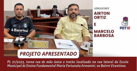 Vereadores Airton e Marcelo (PDT), trabalham por mais segurança no trânsito, especialmente no local indicado, pois trata-se de uma rua localizada ao lado da Escola Maria Fortunata Armanini, e que requer maior atenção dos usuários em virtude de transitar por ela, crianças, alunos, motoristas e demais população.