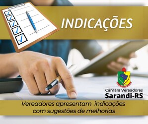 Na sessão ordinária desta segunda-feira, 11 de julho, os vereadores da Câmara Municipal de Sarandi apresentaram três indicações com sugestões de ações e melhorias de interesse público e que já foram encaminhadas às autoridades competentes. Confira:
