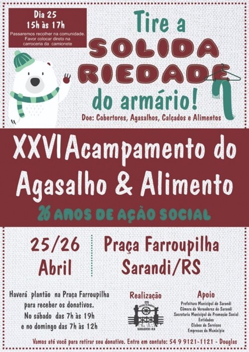 Em abril de 2020, nossa entidade tradicionalista completa 26 anos de ação social realizando o Acampamento do Agasalho & Alimentos.