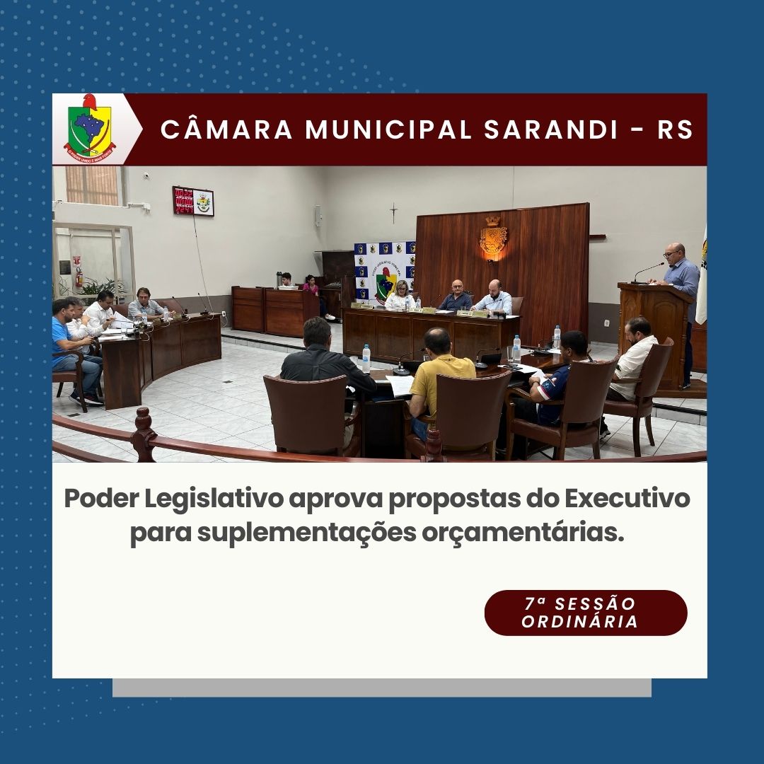 • Aprovação de projetos de suplementações orçamentárias na 7ª sessão ordinária da Câmara Municipal.