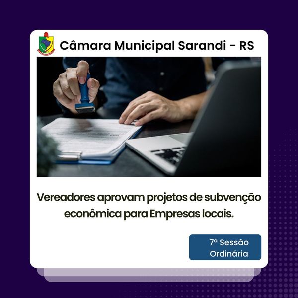 • 7ª Sessão Ordinária da Câmara Municipal: Aprovação de Projetos de Subvenção Econômica para Empresas Locais