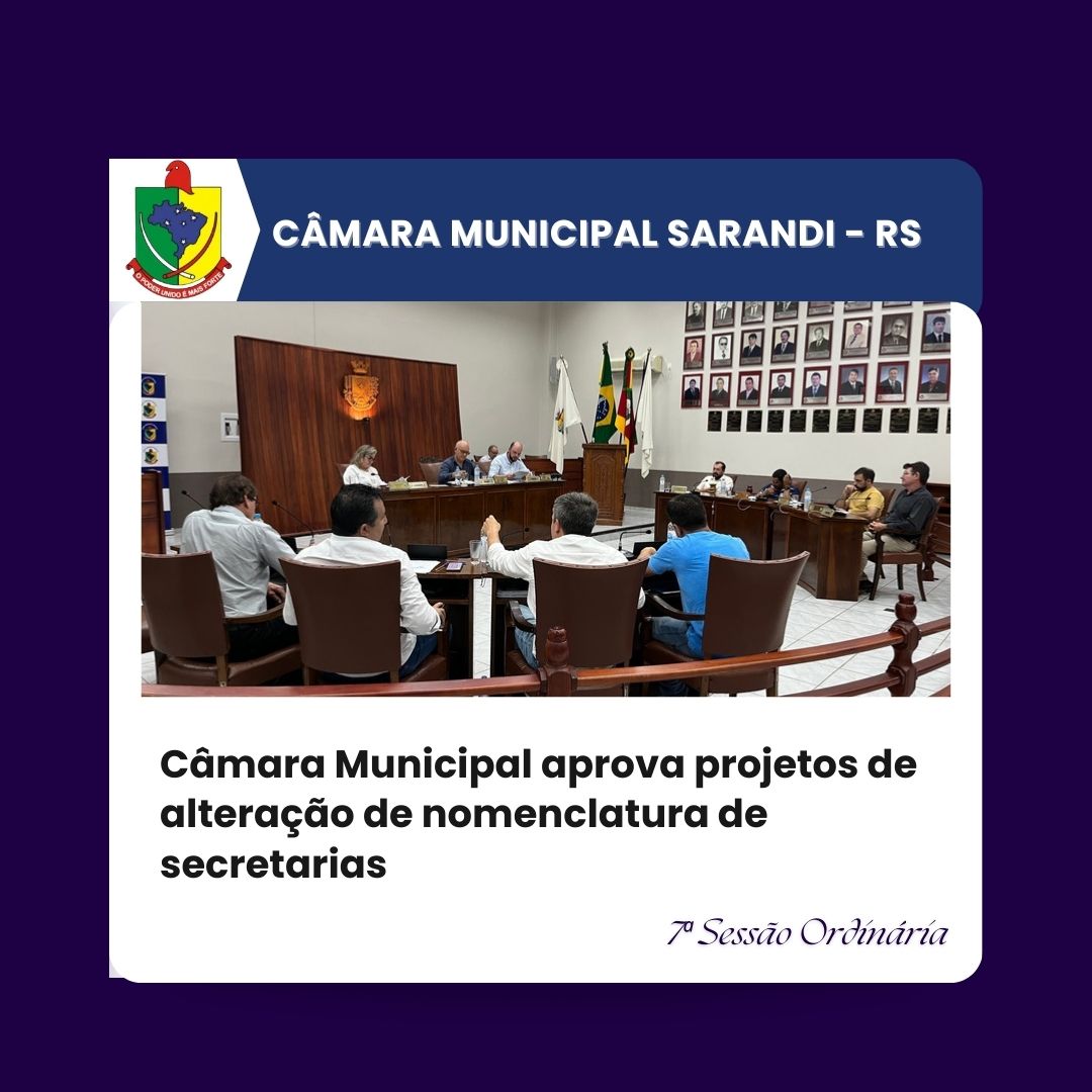 • Câmara Municipal aprova projeto de alteração de nomenclatura de secretarias.